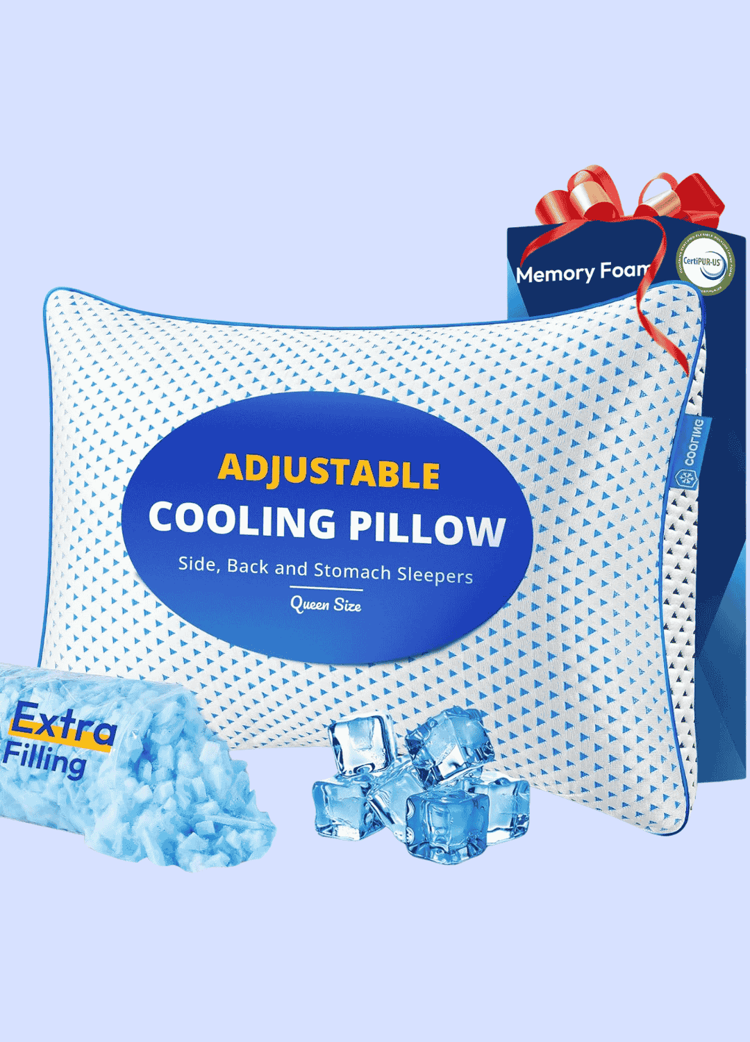 Its adjustable shredded filling lets you customize firmness and loft for side, back, or stomach sleeping. The dual-sided cover features a cooling ice-silk side and a soft, cozy side.