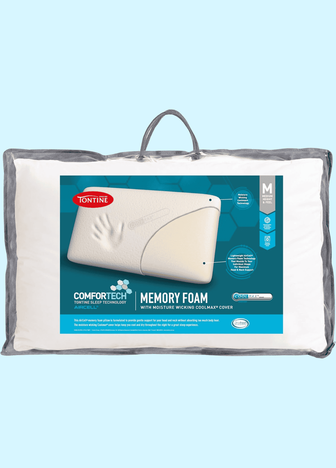 Looking for a pillow that keeps you cool and dry while supporting your neck properly every night? The Tontine Comfortech Coolmax Memory Foam Pillow is designed for back sleepers who need balanced comfort.
