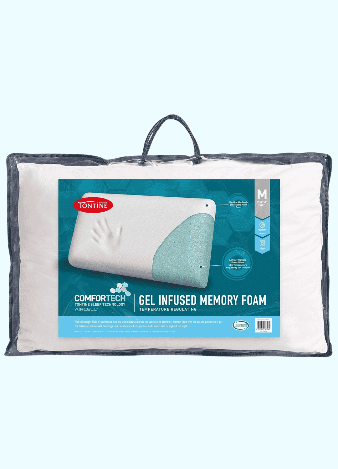 Looking for a pillow that relieves neck pain while keeping you cool all night? The Tontine Comfortech Gel Infused Memory Foam Pillow offers premium support with its gel-infused Aircell memory foam.