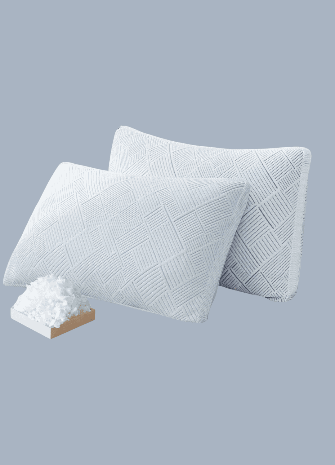 Shredded memory foam pillows with dual-sided cooling covers. Adjustable loft provides personalized support, relieves pressure on neck and shoulders, and ensures a comfortable, uninterrupted night’s rest.